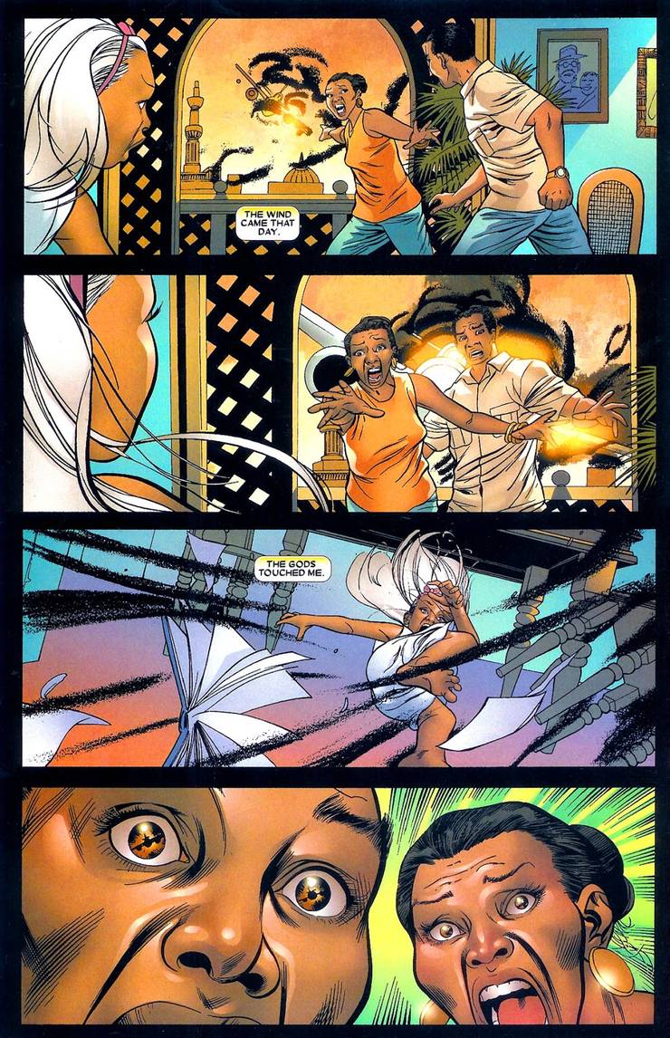 Mas o mais importante, vemos que os poderes mutantes de Tempestade foram acionados bem cedo, devido à uma crise, da mesma forma que Jean Grey e Scott Summers tiveram seus poderes acionados mais cedo do que o normal devido a uma crise.