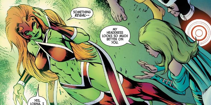 Jean Grey, após perceber todo seu novo poder e potencial, até destrói seu uniforme de Garota Marvel dizendo que não faz mas sentido o “look fofo” e cria um uniforme totalmente novo e “apropriado” (segundo ela mesma) para sua versão She-Hulk.