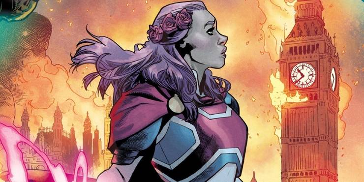 Existem muitas variações no traje básico do Capitão Britânia, mas um dos melhores veio com Alvorecer do X. Betsy Braddock voltou ao holofotes em Excalibur e assumiu o manto de defensora da Grã-Bretanha (e do Extramundo) quando seu irmão Brian estava ausente.