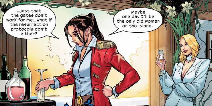Durante o ataque Cotati em Krakoa, é revelado que esse traje é usado apenas para afazeres diplomáticos em Krakoa, já que ele usa seu traje clássico durante a batalha. De qualquer forma, o visual fica muito bem e contrasta bastante com de Xavier, simbolizando uma espécie de “Yin-yang” entre os dois.