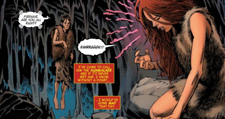 Este homem, a quem ela passou a chamar de Highwalker, encontrou vários outros mutantes e deu a eles um lar em uma caverna onde vivem em segurança. O Highwalker leva a garota, que ele chama de Cabelo de Fogo, para sua caverna. Lá, ela conhece sua Tribo Sem Medo, que é composta por vários mutantes com habilidades variadas.