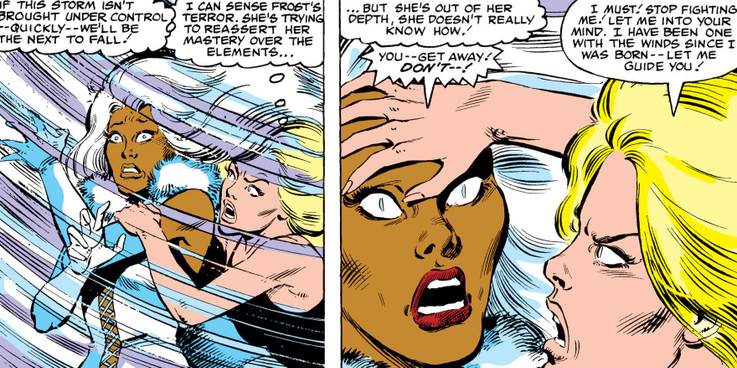 Esta aventura aumentou a rivalidade mútua entre Tempestade e Emma Frost, mesmo que as duas agora sejam aliadas. Emma já havia sequestrado e torturado Ororo antes, consolidando essa rivalidade. Desta vez, no entanto, Emma roubou o corpo e os poderes de Storm, com o propósito expresso de matar seus entes queridos. Ororo se sentiu tão violada que Wolverine teve que persuadí-la a não matar Emma. A Rainha Branca também tentou “roubar” Kate Pryde, que é basicamente uma filha para Tempestade. Tentando interromper uma relação tão forte e saudável, Emma irritou seriamente as duas. No final, foi esse vínculo entre Kate e Ororo que salvou a todos.