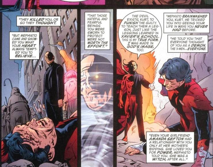 É um destino brutal para Noturno da Terra X. Durante anos, Kurt Wagner lutou contra a ideia de que ele era uma figura diabólica. Apesar de sua aparência, ele sempre foi um dos X-Men mais puros de coração, um homem genuinamente fiel e otimista que fez o seu melhor para proteger um mundo que o odiava e temia. E ainda assim, graças à intervenção de Mephisto, Kurt foi forçado a se tornar aquilo que mais temia no mundo.