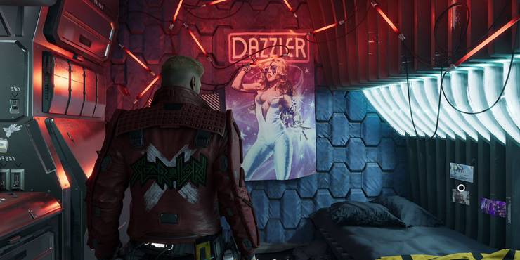 No momento em que você estiver jogando com o Senhor das Estrelas, é possível entrar no quarto do personagem, que fica na nave dos Guardiões, a Milano. O quarto tem muitas referencias aos anos 80, e é até possível ver um pôster da mutante Cristal pendurado na parede, o que confirma que os mutantes existem no jogo. Confira: