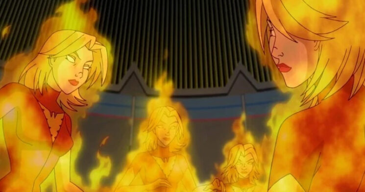 PROBLEMA: Embora prepare o terreno para a transformação de Jean Grey na Fênix, a saga nunca aconteceu nesse universo, devido o encerramento da animação na quarta temporada.